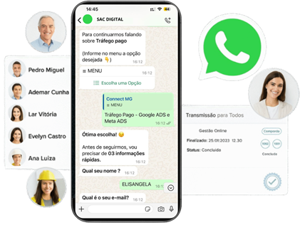 Transforme seu atendimento com gestão inteligente, atenda com chatbot e tenha um canal seguro e oficial com a API do WhatsApp, tudo integrado para oferecer a melhor experiência aos seus clientes.